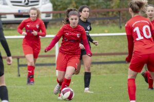 Ein Traumstart für das Team von Trainer Manuel Gall, denn es waren noch keine 60 Sekunden verstrichen, da stand es schon 1:0. Jana Huber flankte von der Grundlinie, Romina Schindler stand goldrichtig und lochte ein. In der 21. Minute das beruhigende 2:0. Aus einem Gedränge im Torraum schlägt eine Engstinger Abwehrspielerin den Ball. Vermutlich will ihn die Torhüterin nicht annehmen wegen einem vermeintlichen Rückpass. So kullert das Spielgerät über die Torlinie. Beim 3:0 in der 31. Minute sieht die Torhüterin erneut nicht gut aus bei einem durchaus haltbaren 20-Meter-Flachschuß von Sabrina Kalmbach.