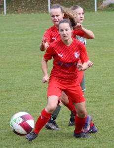 Alicia Roller hatte ihr Team in der 19. Minute in Führung gebracht.  Als ein Querschläger bei ihr landete, tanzte sie zwei Gegenspielerinnen aus und versenkte den Ball flach im Eck. Drei Minuten später wird Elisa Lutz im Strafraum gelegt. Den Strafstoß von Jana Rutz kann die Torhüterin abwehren, doch „Ali“ ist zur Stelle und erhöht zur 2:0 Pausenführung. Die Bernecker waren klar überlegen, hatten aber auch Glück, als Granheim nur die Latte traf.