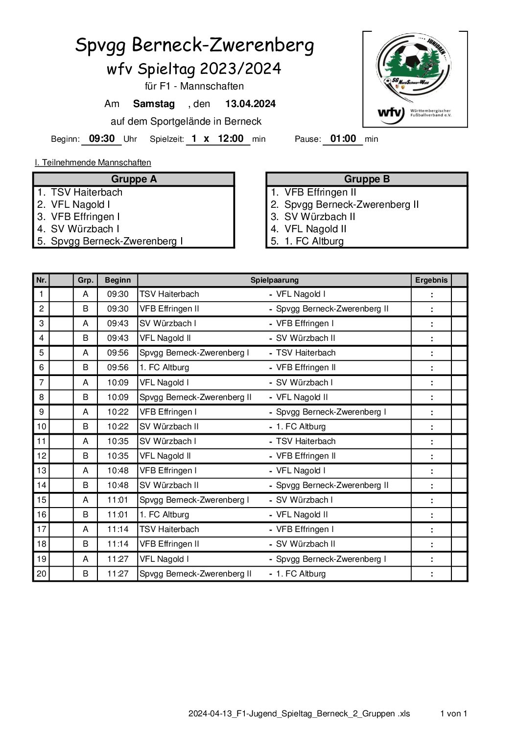 Am Samstag jagen ab 9.30 die F-Junioren dem runden Leder nach. In zwei Gruppen mit je 5 Mannschaften wird jeweils 12 Minuten... Weiterlesen