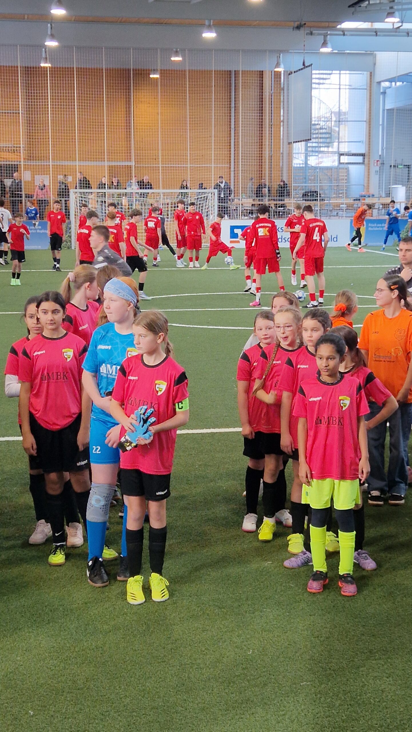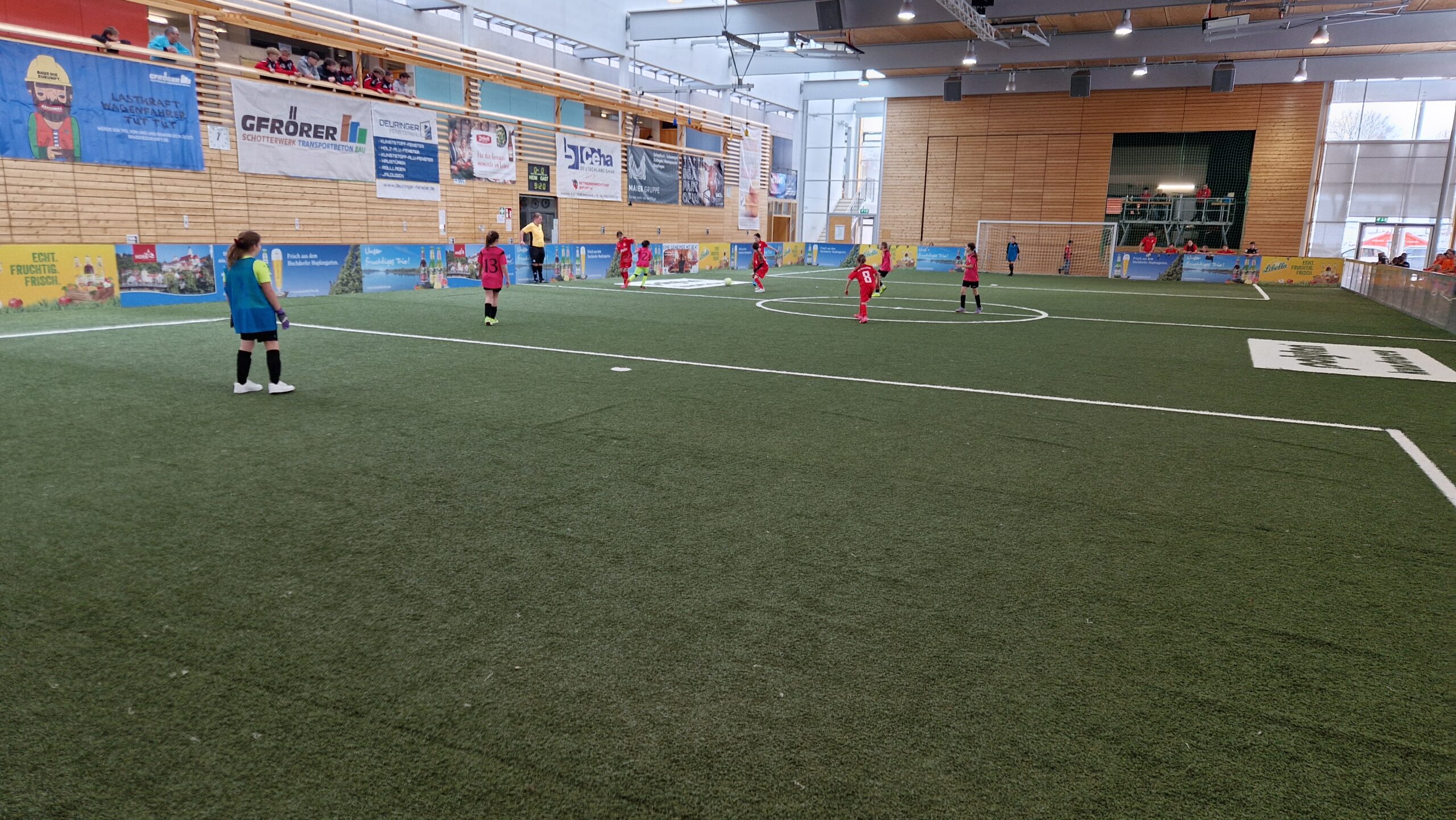 Das Ende der Weihnachtsferien wurde dieses Jahr durch ein Hallenturnier eingeläutet. Passenderweise hatte die SG Empfingen als Veranstalter des SACS Aerospace Jugendcups den Beginn der Spiele so früh angesetzt, dass man sich direkt wieder an das frühe Aufstehen gewöhnen konnte. Nach anstrengender Anreise bei Schneefall in der Morgendämmerung entschädigte dann der Anblick der Halle die Frühaufsteher: Gespielt wurde auf Kunstrasen mit Vollbande in einer verglasten Halle, was der Veranstaltung ein besonderes Ambiente verlieh. E- und D-Mädels suchten parallel ihren Turniersieger und da bei unseren Mädels alle Altersklassen von 2017 bis 2013 vertreten sind, hatten wir jeweils eine Mannschaft am Start.