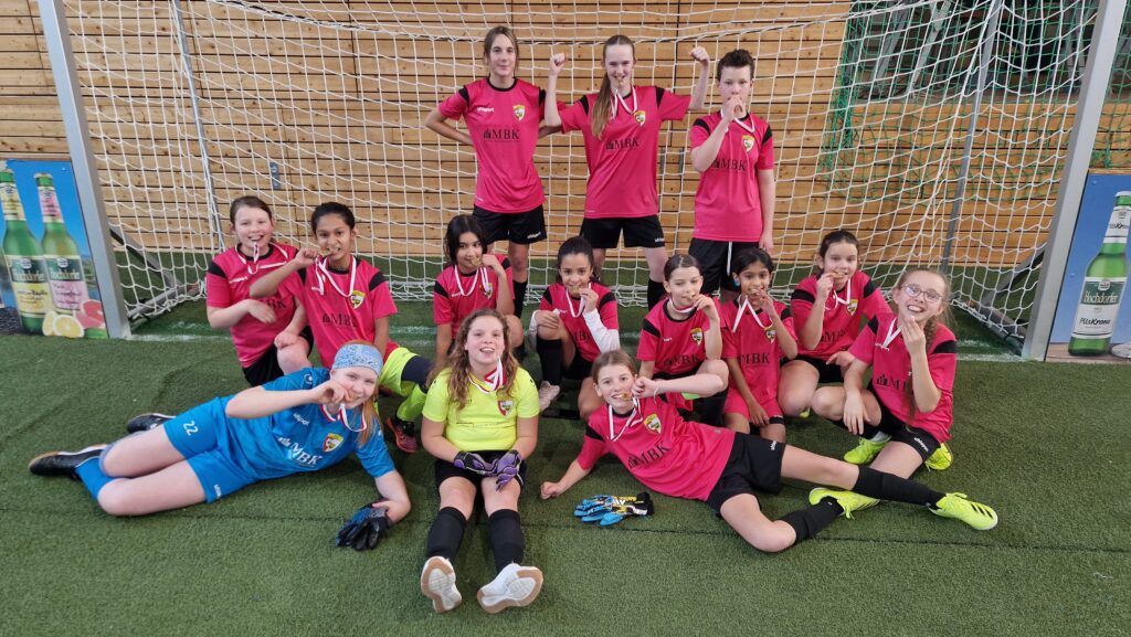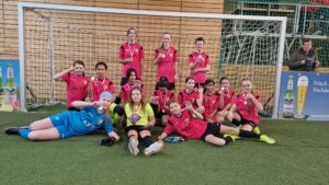 Bei der Siegerehrung gab’s dann Medaillen für die jeweils vier besten Mannschaften, so dass alle Mädels nach gemeinsamer Spezi-Stärkung dekoriert und gut gelaunt auf die Heimreise gehen konnten. Und wenn’s die Trainer schaffen, den Sinn der auf beiden Seien stehenden Tore zu vermitteln, können wir aufgrund der gezeigten Leistungen hoffnungsvoll auf die restlichen Turniere schauen.