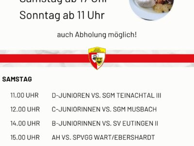 Hiermit möchten wir euch auch in diesem Jahr wieder zu unserer jährlichen Schlachtplatte im Sportheim einladen. Das ganze Wochenende ist gespickt mit diversen unterhaltsamen Spielen unserer Mannschaften. Außerdem bieten wir... Weiterlesen