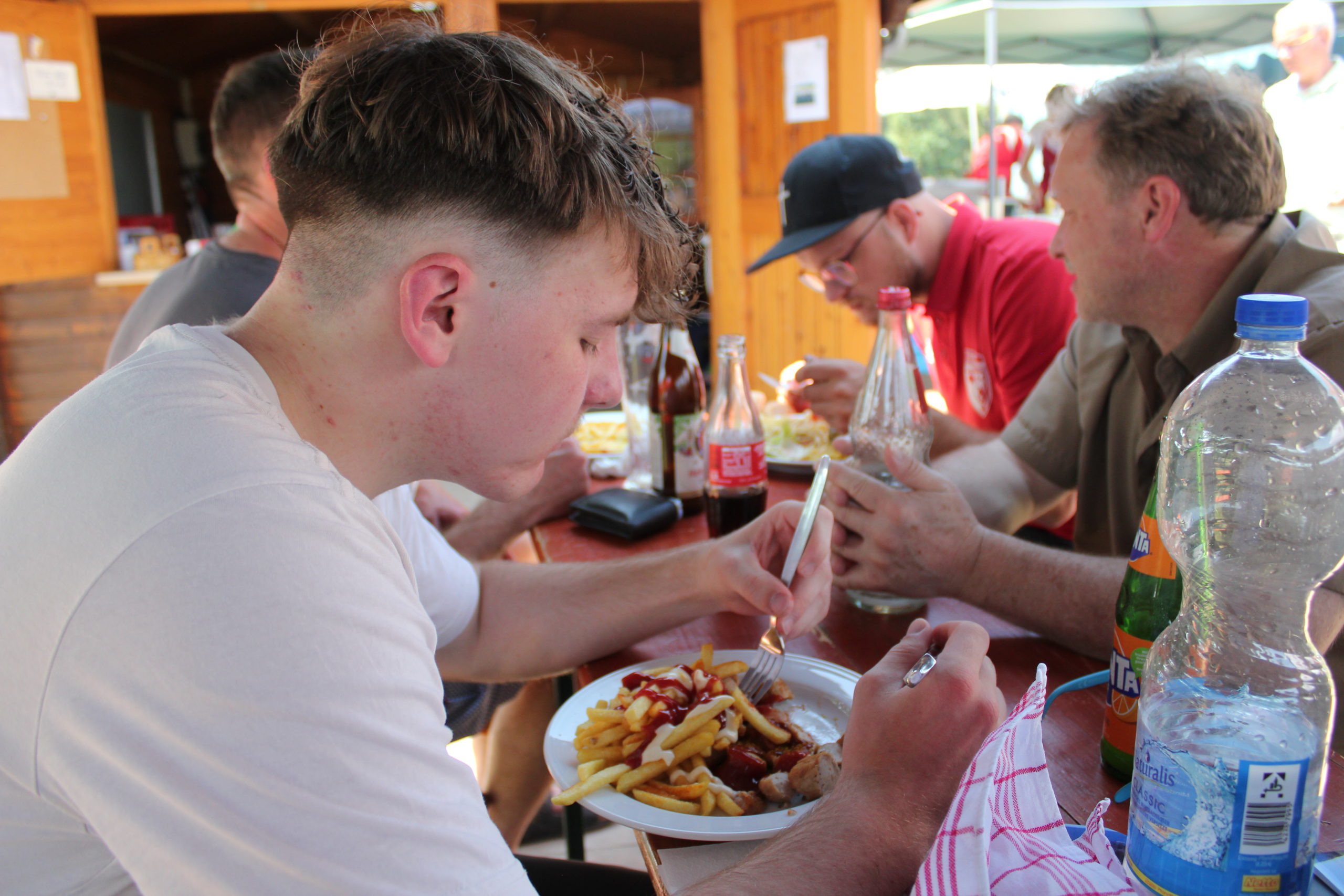 Los gings um 10.30 Uhr mit einem lockeren Kick für alle die Lust hatten das Runde ins Eckige zu befördern. Ab 12.00 Uhr grillten Bernd, Vanessa, Christina und Paddy Wurster für uns leckere Fleischvariationen. Küchenfee Tina Keck hatte alles unter Kontrolle, Gaby Großhans alle Hände voll mit der Ausgabe von leckeren Pommes und Theo war in der Getränkeausgabe sehr gut beschäftigt. Dazu gab es köstliche frische Salate und verführerische Desserts.