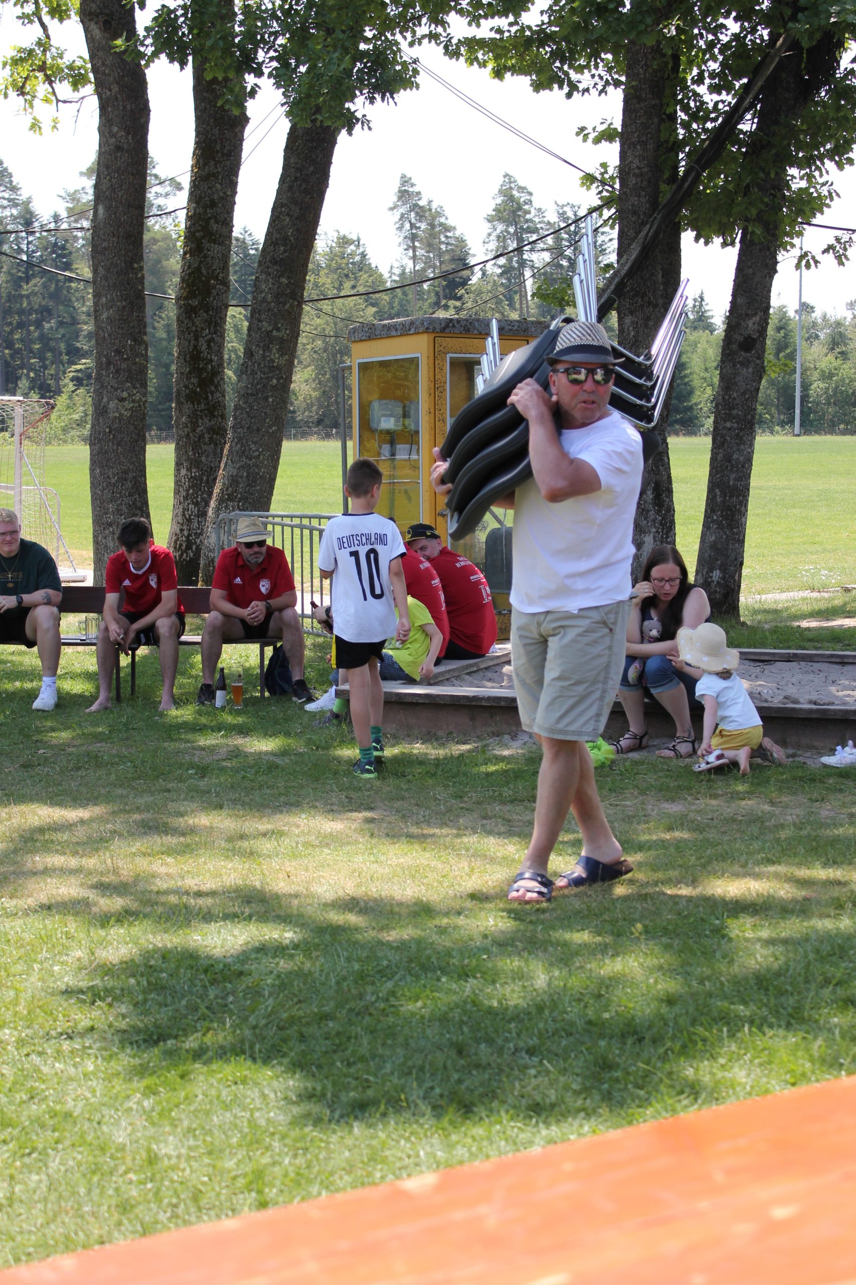 Los gings um 10.30 Uhr mit einem lockeren Kick für alle die Lust hatten das Runde ins Eckige zu befördern. Ab 12.00 Uhr grillten Bernd, Vanessa, Christina und Paddy Wurster für uns leckere Fleischvariationen. Küchenfee Tina Keck hatte alles unter Kontrolle, Gaby Großhans alle Hände voll mit der Ausgabe von leckeren Pommes und Theo war in der Getränkeausgabe sehr gut beschäftigt. Dazu gab es köstliche frische Salate und verführerische Desserts.