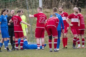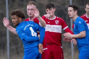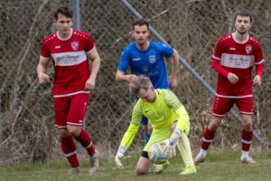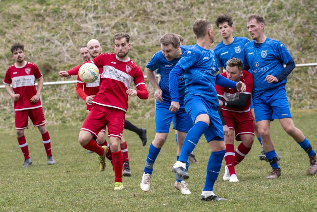 Kurz vor der Pause dann der erste Rückschlag: Nach einem Zweikampf entschied der Schiedsrichter auf Strafstoß für die Gäste – Pfalzgrafenweiler verwandelte sicher zum 1:1. Und es kam noch bitterer. Mit einer Bogenlampe aus dem Halbfeld gelang den Gästen kurz vor dem Halbzeitpfiff sogar die 1:2‑Führung.