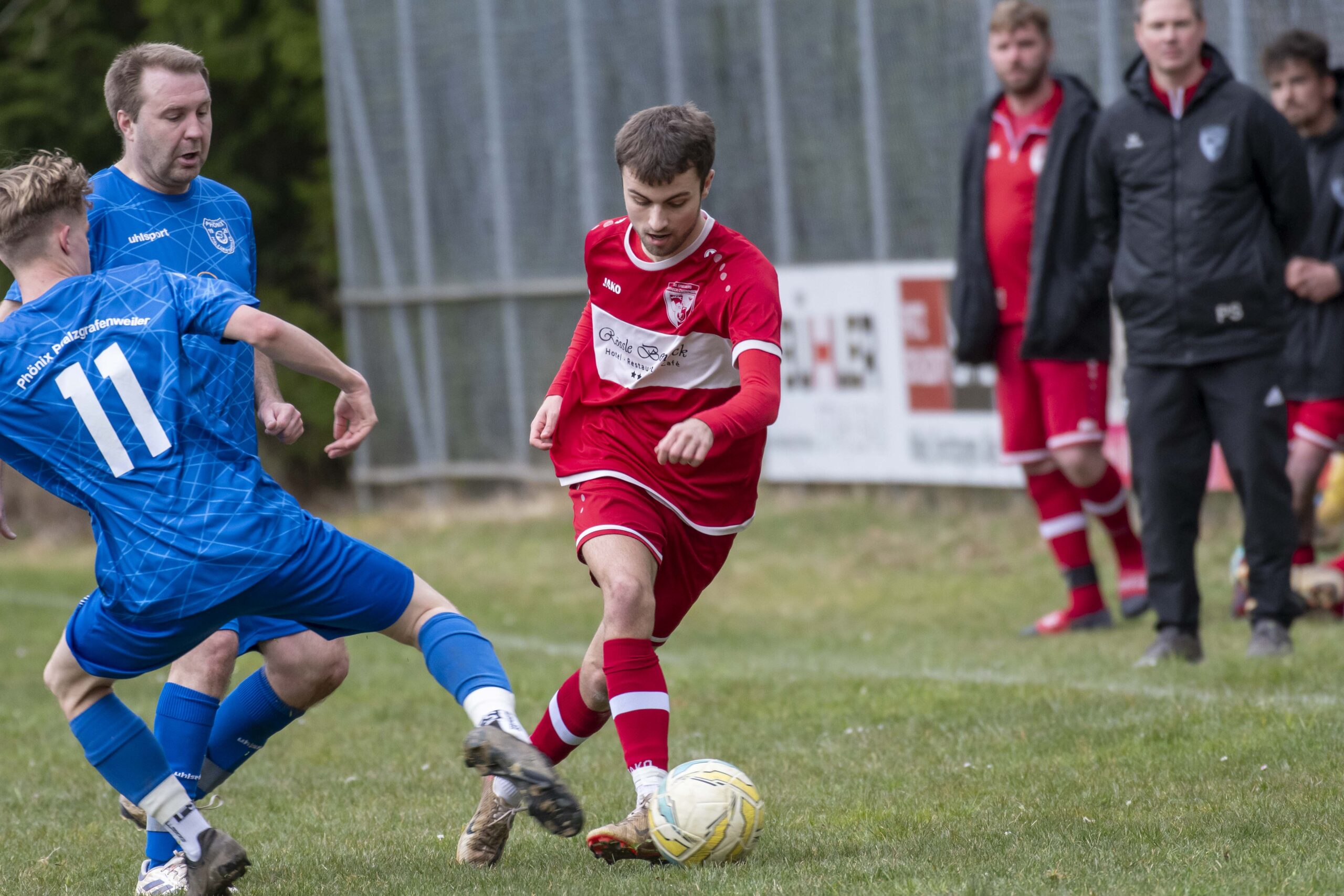 Kurz vor der Pause dann der erste Rückschlag: Nach einem Zweikampf entschied der Schiedsrichter auf Strafstoß für die Gäste – Pfalzgrafenweiler verwandelte sicher zum 1:1. Und es kam noch bitterer. Mit einer Bogenlampe aus dem Halbfeld gelang den Gästen kurz vor dem Halbzeitpfiff sogar die 1:2‑Führung.