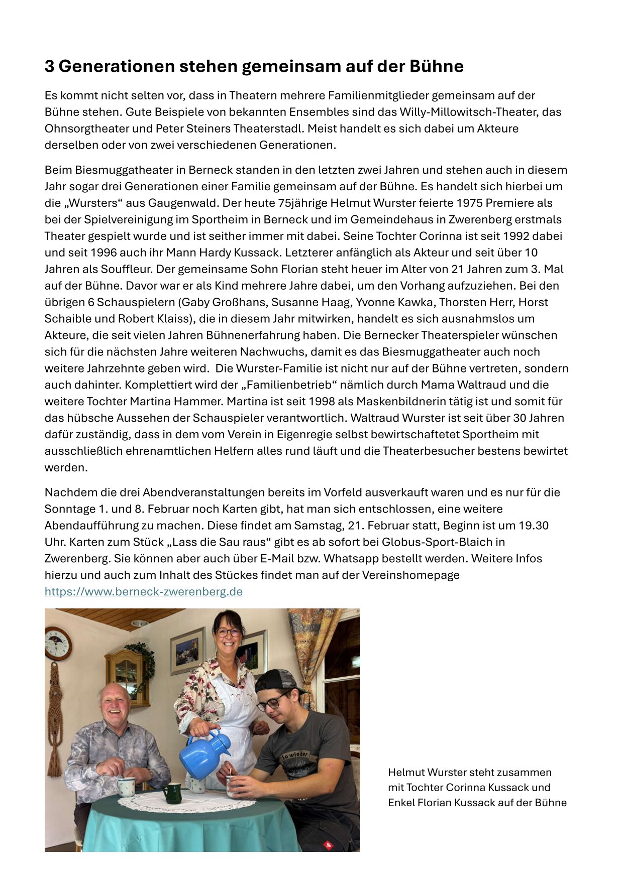 Zusätzlicher Termin der Theatergruppe